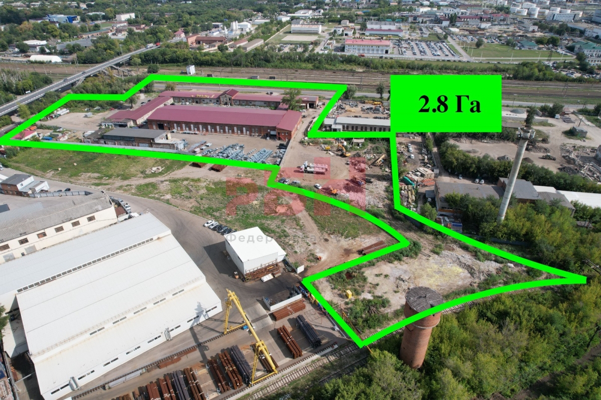 Земельный участок 2,8 Га, сложной формы с выходом к действующей ж/д ветке, твердым покрытием, огороженный. Имеются свободные площади под строительство зданий.